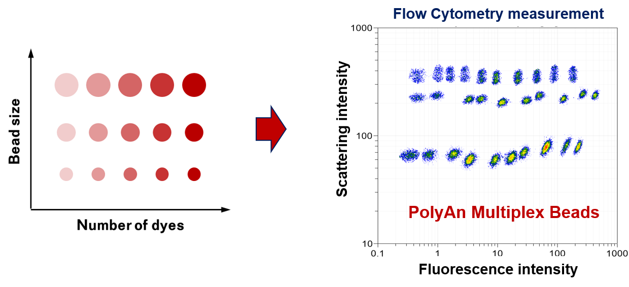 Moreoever, PolyAn offers the design of multiplex beads for proprietary analytics systems. Please do not hesitate to contact us, if you are interested in the OEM-production of multiplex beads for your specific systems.