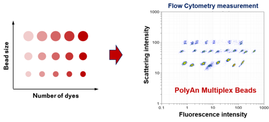 - Flow Cytometry Systems: PolyAn Blue Multiplex Beads - up to 10 populations of single color encoded beads, that can be combined with the 30-plex PolyAn Red4 Multiplex Bead Set