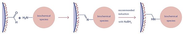 - Attached biomolecules can be stabilized by reducing the imines with sodium cyanoborohydride