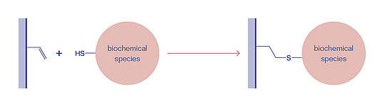 Alkene surfaces can be used as substrate for polymerization reactions, e.g. for photopolymeric additive manufacturing, or to immobilize Thiol-containing molecules via the Thiol-ene addition reaction (alkene hydrothiolation).